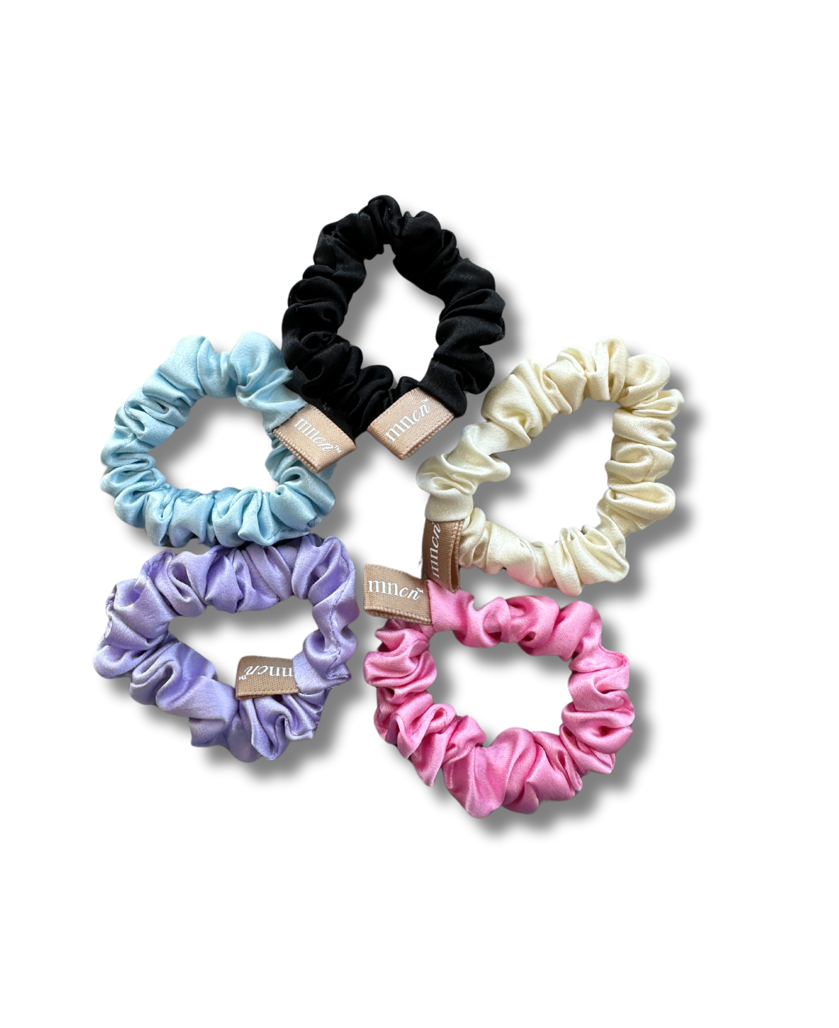 Our brand new size, in a pack of 5 - includes 1 'black' mini, 1 'snow' mini, 1 'baby blue' mini, 1'baby pink' mini, 1'lavender' mini!
