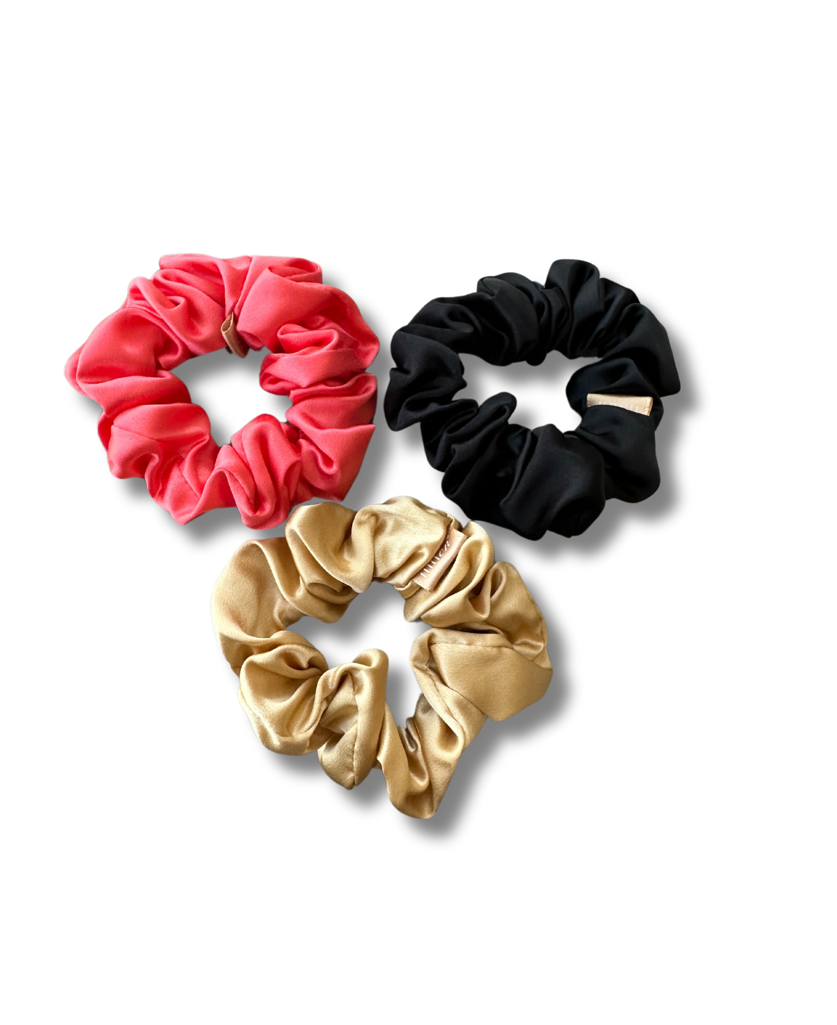 pack of 3 - includes 1 'coral' scrunchie & 1 'midnight black' scrunchie, 1 'dahab' scrunchie