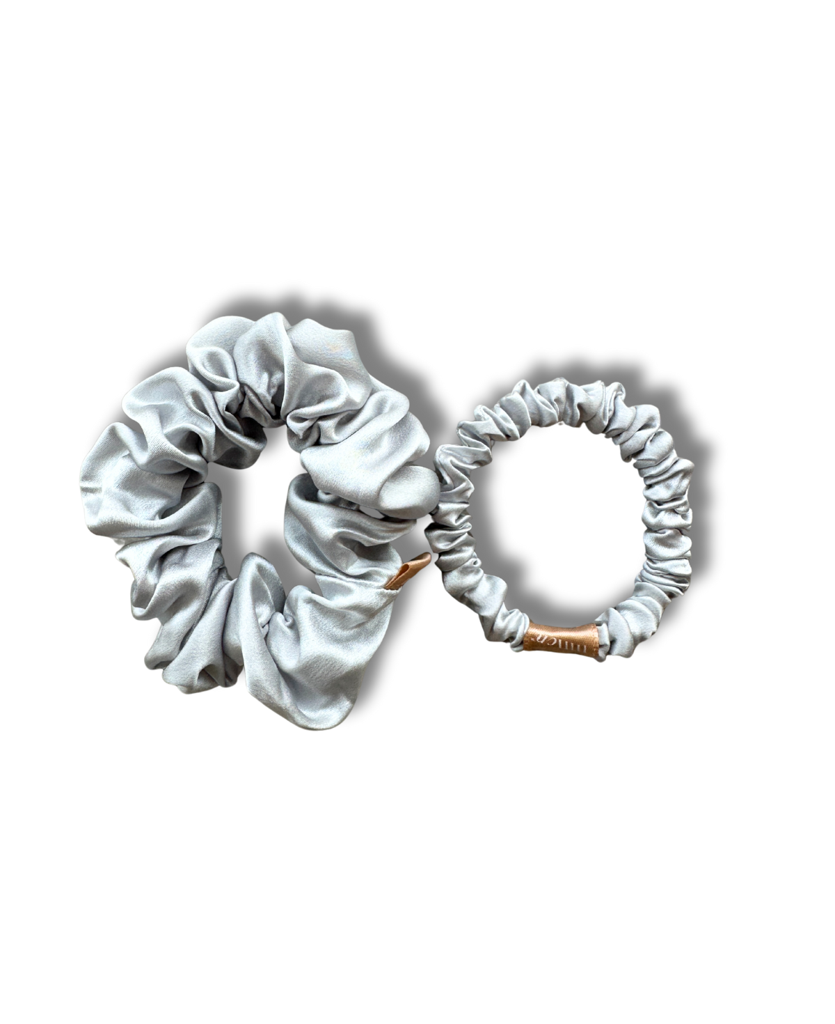 pack of 2 - includes 1 'silver' scrunchie & 1 'silver' skinny scrunchie